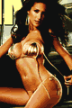 Stretch tricot foil. Front lined.キラキラ光るセクシービキニ。トップは首の後ろと背中で結ぶトライアングルスタイル。ボトムは両サイドをヒモで結びます。バックスタイルは、ヒップのセンターラインにギャザ…