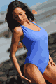 シンプルな無地のワンピース水着。バックはU字に開いたデザイン。バッドはありません。85% Nylon, 15% Lycra。