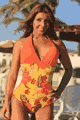 Halter style, Ties at neck, Shirred bustline, Scoop back, Low cut legs, Full rear coverage, Fully lined, Catalina …