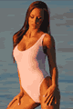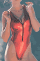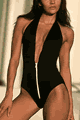 メタリックラメのワンピース水着。フロントジップアップのセクシーなデザイン。バックは肩からT字になっていて、ヒップはほぼ隠れま…
