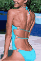Show off some skin with its skimpy style. Low cut bottom, full coverage rear, open twist front, halter style, t…