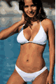 Top: Adjustable sliding triangles, ties at neck and back, slightly sheer when wet, fully lined. Bottom: Scoop fron…