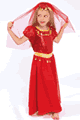 キュートな女児用のアラビアンコスチューム。ヘッドドレスとワンピースのセットです。ゴールドの貝型シークインのフリンジが付いたキュートなデザインです。ドレスはトップ部分がキラキラ光るシークィンドット付きで、スカートはサテンにメッシュを重ね、袖はメッシュの…