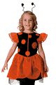 女の子用のかわいいてんとう虫コスチューム。カチューシャ、ワンピースのセット。着丈 120size:64cm、140size:68cm。ポリエステル100%。