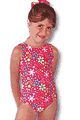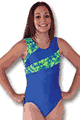 Nylon/lycra blue tank leotard with sparkle hologram print. AdultLLTLNT−064.ブルーにキラキラ光るシークィンの付いたライムグリーンのラインが入った子供…