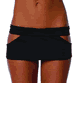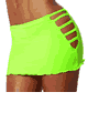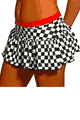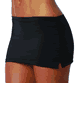 Lycra. 10 inch (25cm) Long. 両サイドがカットされたデザインのミニスカート。裾はラッフルデザイン。裏地はありません。90%Nylon, 15%Lycra。