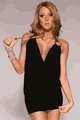 Necklace LFP977500.ゴールドのリングが付いたセクシーなミニドレス。トップは生地を弛ませ、ウエストラインにギャザーを寄せたデザイン。ホルターネックスタイルで、ネック部分はゴールドのスタッド付きの3本のストリングに…