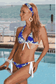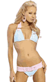 Stretch tricot. Swim safe. Front lined. Glows true color in blacklight.かわいいプリントのビキニセット。トップは首の後ろと背中で結んでとめるトライアングルトッ…