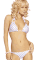 Stretch tricot. Swim safe. Front lined. Glows in blacklight.スクエアバックル付きのドットプリントビキニ。トップはネックとバックで紐を結んで留めるスタイルで、カップ部分に…