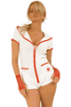 Stretch knit dress, nurse cap and removable name badge.ナースコスチューム、ナースキャップのセット。前はハート型のボタン5つでとめるスタイル。襟内側にチラ見せレースが付いて、…