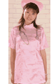 Apron dress with satin bow and headpiece set. Bag LLAA1518, Thigh Highs LLA9511.ピンクのストライプがキュートなナースコスチューム。ドレスとヘッドピー…