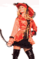 Dress, corset, hat, sword and eye patch. Embroidered stain/stretch lace. Boot Cuffs LRB1429B.鮮やかなピンクとブルーのパイレーツコスチュ…