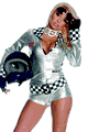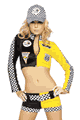 Zipper front top with patches, short and belt. Stretch spandex. Rascing Cap LRBH−100.セクシーなレーサーコスチューム。トップ、パンツ、ベルトのセ…