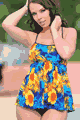 Top with babydoll style tankini, crisscrossed straps in back, tummy control lining, waist length, shirring at bust…