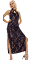 Shiny knit sleeveless tunic, neck sash, headband, long fingerless gloves and faux sword.