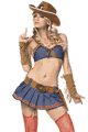 Denim bra top, skirt and fringe arm warmers. Hat, Belt, Holster and Gun Set LLAA1501.