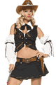 Cropped tie Top, badge, bolo tie and denim skirt. Hat, Belt, Holster and Gun Set LLAA1503.