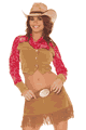 Fringe skirt, long sleeve top with attached vest, belt and handkerchif. Hat LEM9673.
