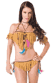 5 pc set. Fringe skirt with panty attached, top, arm cuffs and collar with feather details.