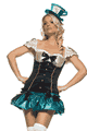 Dress and tea cup head piece.不思議の国のアリスの登場人物、マッドハッターのドレスコスチューム。ドレスとティーカップ型のヘッドピースのセットです。ドレスはバックファスナー付きで、フロントのゴールドのボ…