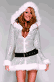 Zipper front sequined dress with hood and faux fur trim.シルバーのシークィンドットがきらきら光るフード付きドレスとビニールベルトのセット。ドレスはセクシーなジッパーフロント…