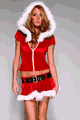 Zipper front velvet top with sequined lined hood and matching round skirt.ストレッチベルベットのフード付きサンタコスチューム。トップ、スカート、ビニールベ…