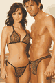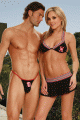 ペアセット。WomenVs string bra top and matching thong with detachabll garters. MenVs pouch and sthethoscope.