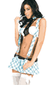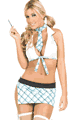Skirt with attached belt, top, toy handcuffs and head piece set.