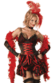 Corset−style dress, lace boy shorts, fingerless lace gloves, jeweled choker, feather headpiece, fishnet thigh−high…