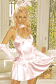 Satin mini dress with adjustable straps and sewn on tail. Gloves, neck piece and head piece are also included.ピンクの…