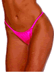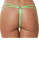 腰の部分のストリングが三角になったThong(T−back)ビキニボトム。水着のような素材で裏地付き。80% Nylon, 20% Lycra。