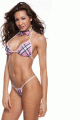 Stretch tricot. Swim safe. Front lined. Glows in blacklight.スクエアバックル付きのドットプリントビキニ。トップはネックとバックで紐を結んで留めるスタイルで、カップ部分に…