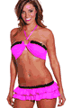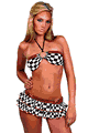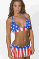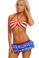 USプリントのブラトップとミニスカートのセット。トップはネックと背中の紐を結んで留めるスタイルで、パッドや裏地はありません。スカートはプリーツスタイルです。水着の生地のようなストレッチ素材です。