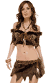 Top and skirt.ジャングルクイーン。アニマル柄のトップとスカートのセット。トップはオフショルダーの五部丈袖で、トップとボトムにファーのトリム付き。フロントはフェイクスウェードにアクセサリービーズの付いた紐でレースアッ…