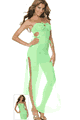 胸元、背中が大きく開いたセクシーなロングドレスとG−Stringパンティのセット。ドレスは首の後ろで紐を結んでとめるホルタースタイル。胸元のシルバーリングがポイントです。100% Polyester。