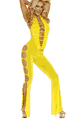 Lycra. ホルタートップのキャットスーツ。フロントはおへその下まで入った大胆なカットがセクシーなデザインです。トップは首の後ろで紐を結んで留めるデザイン。パンツ部分はブーツカットスタイルです。90% Nylon, 10…