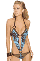 Stretch Poly/Spandex. Swim safe. Front lined. Glows in Blacklight.フロントがV字スタイルになったセクシーなワンピース水着。首の後ろと背中で結んでとめます。おしりは…