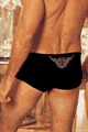 光沢のあるストレッチ生地のセクシーなベリーローライズのボクサーショーツ。ウエストはゴムバンドです。
