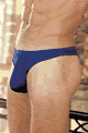 フロントにジッパーが付いたThong(T−back)タイプのメンズパンティ。裏地はありません。商品写真入りプラスチックケース入り。83% Nylon, 17% Spandex。