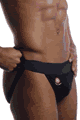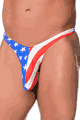 バックに生地が無いデザインのセクシーなコットンブリーフ。全体に黒で「FIRE DEPT」(消防署)ロゴプリントが付いています。ウエストは約5cm幅のゴムバンドで、バックは約2.5cmのゴムバンドでV字のフレームになっています。100% Cotton。