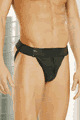 バックに生地が無いデザインのセクシーなコットンブリーフ。ウエストは約5cm幅のロゴ入りゴムバンドで、バックは約2.5cmのゴムバンドでV字のフレームになっています。90% Cotton 10% Lycra。