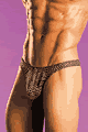 アニマルプリントのボクサー。ポーチ付きで、前は開きません。カラーは茶系でゴールドではなく、写真のような光沢はありません。裏地はありません。ボックスケース入り。85% Nylon, 15% Spandex。
