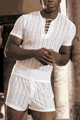 Stripe Spandex Knit Shirt with Lace-Up Front
